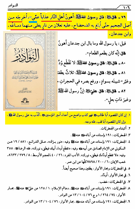 وثائق من كتب الشيعة ابوطالب من كتب الشيعة ghousoun فبراير 18, 2026 0 أبو طالب في النار … موثقتنزيل علي يقول ان ابوه ضالتنزيل ايمان ابائه لم يثبت . التحقيق في كلمات القرآنتنزيل أبو طالب في النار … 2تنزيل أبو طالب في النار … 1 .. مستدرك الوسائلتنزيل ابو طالب في النار .. نوادر الراونديتنزيل ابو طالب في النار … صحيح البخاريتنزيل ابو طالب في النار … صحيح مسلمتنزيل انك لا تهدي من احببت … مجمع البيانتنزيل الروايه في باب الميراث المسلم والكافرتنزيل علي يقول ان ابوه ضالتنزيل أبو طالب في النار … موثقتنزيل الروايه في باب الميراث المسلم والكافرتنزيل إنك لا تهدي من أحبت .. تفسير كنز الدقائق وبحر الغرائبتنزيل المسلم يرث الكافر . صحيح روضة المتقين .تنزيل ابو طالب في النار .. نوادر الراونديتنزيل